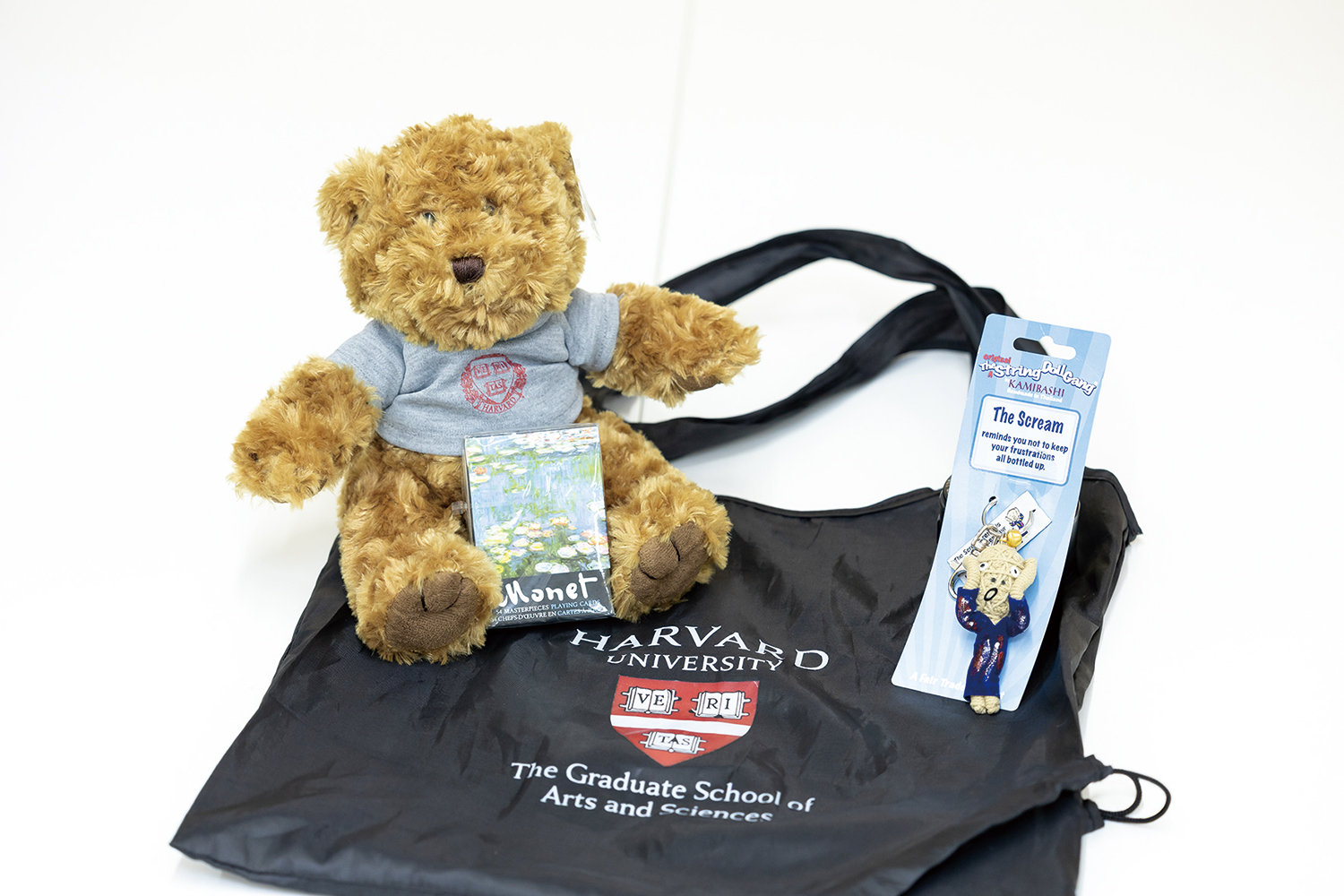 エコバッグは日用品を買う時の必需品。トランプはラウンジで参加者と遊ぶのに役立ちました。キーホルダーとぬいぐるみはお土産です。